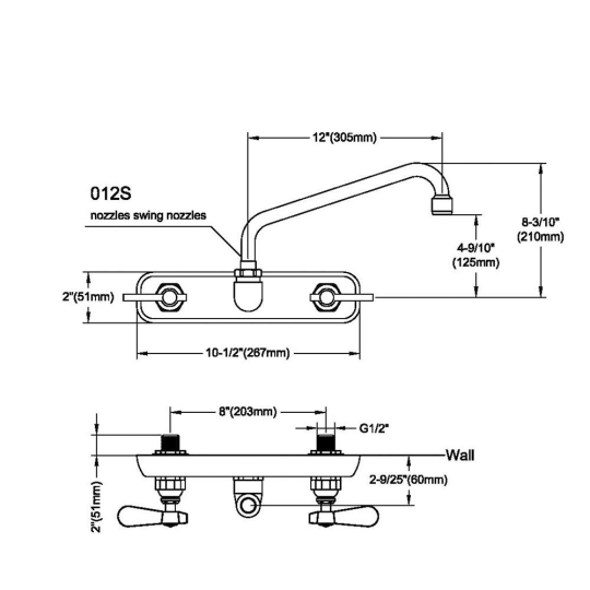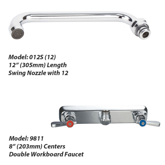 Vòi được thiết kế dạng gắn tường, khoảng cách tâm 8 inch (203mm), kết hợp với đầu vòi xoay dài 12 inch (305mm) giúp mở rộng phạm vi sử dụng, thuận tiện thao tác trong không gian bếp. Sản phẩm tích hợp van một chiều (check valve) giúp ngăn dòng chảy ngược, đảm bảo an toàn vệ sinh nguồn nước trong môi trường bếp công nghiệp.