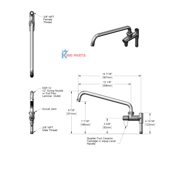 → Dùng để cung cấp nước linh hoạt qua cần swing 12″, hỗ trợ rửa và rót nước trong hệ pre-rinse.