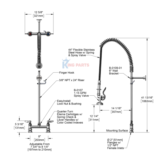 KingParts chuyên cung cấp vòi phun tráng T&S, thiết bị bếp công nghiệp và linh kiện thay thế cho nhà hàng – khách sạn – bếp công nghiệp.
