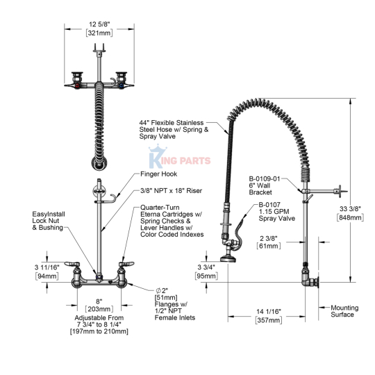 KingParts – Đơn vị cung cấp vòi phun tráng T&S chính hãng