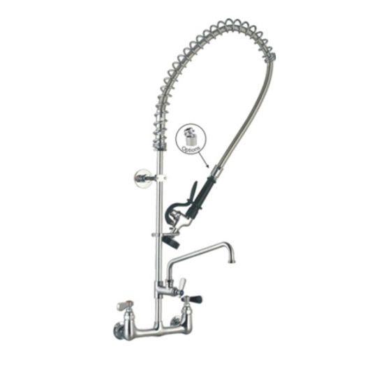 Đây là vòi phun tráng công nghiệp Lắp Tường với cấu tạo chịu tải nặng, được thiết kế cho các khu rửa chén bát cường độ cao. Với ống đứng 20 inch và dây phun thép không gỉ 44 inch, sản phẩm đảm bảo phạm vi hoạt động rộng và độ bền tuyệt đối. Điểm nổi bật: Tích hợp Van phun tuân thủ ANSI/ASTM cho hiệu suất tối ưu và Van một chiều đảm bảo an toàn hệ thống. Sản phẩm còn kèm vòi phụ xoay 6 inch tiện lợi, và linh kiện tương thích hoàn toàn với T&S, giúp việc bảo trì trở nên đơn giản.
